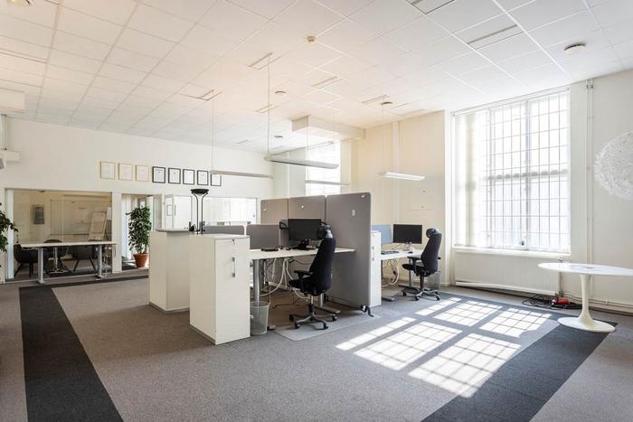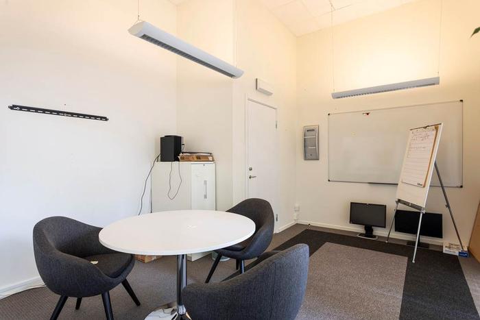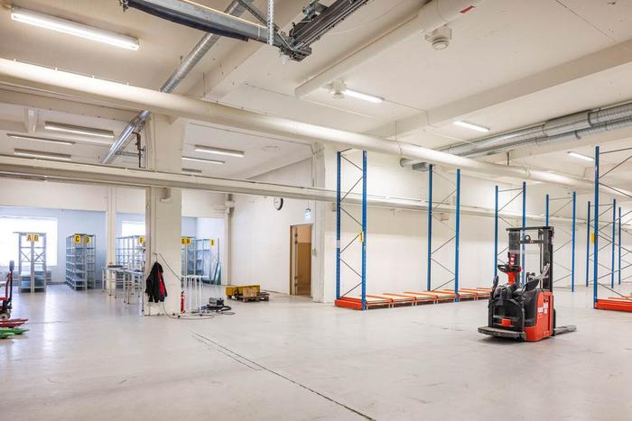 Lokalen omfattar en kombinerad kontors-, lager- och industrienhet med flexibla och välplanerade ytor. Kontorsdelen erbjuder en representativ entré, flera separata arbetsrum och mötesrum samt ett fullt utrustat kök. Den bakre delen av lokalen utgörs av lager-/industridelen, som nås direkt från kontorsytan. Här finns generös takhöjd om 4,6 meter och ett eget lastintag, vilket ger goda logistiska förutsättningar. Lokalens utformning är både funktionell och anpassningsbar, vilket gör den lämplig för många typer av verksamheter.