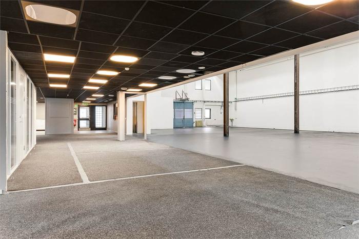 Denna kombinerade lager- och kontorslokal omfattar totalt706 kvm, fördelat påmarkplanochentresolplan.Lagerdelen om 516 kvmerbjuder generösa ytor med6,5 meters takhöjd, stora öppna ytor och utmärkta lastningsmöjligheter via egen markport.