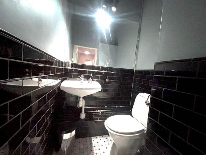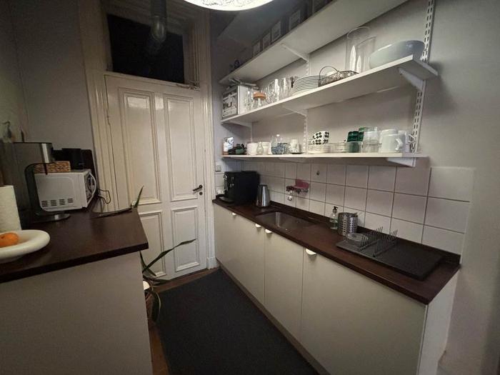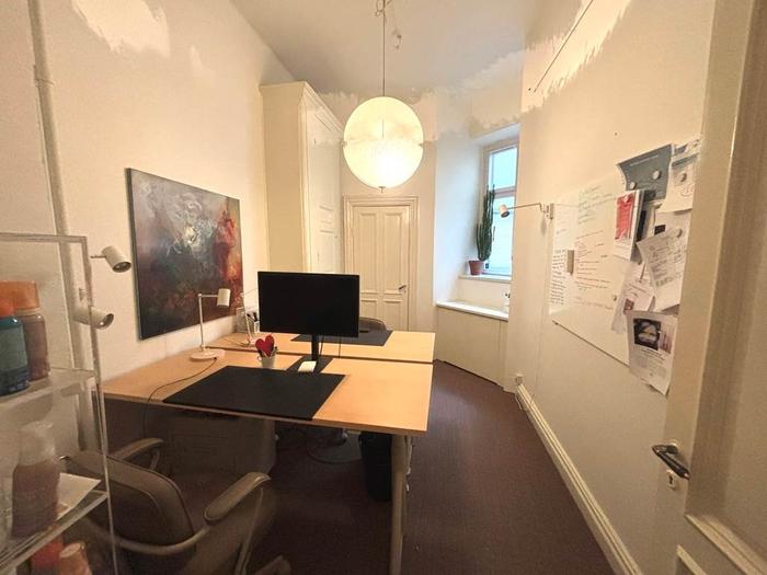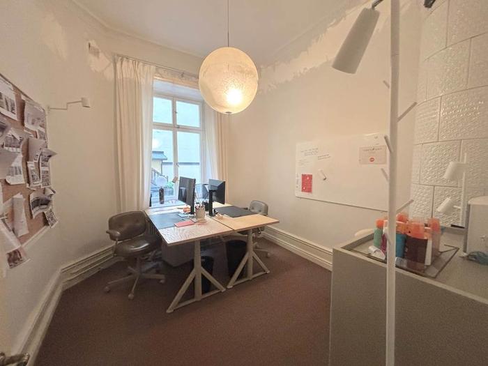 Lokalen består av två sammanlänkade lokaler med egna entreér, 2 väldigt fräscha toaletter, ett mindre pentry samt två stora rum mot gatan och två mindre rum med fönster mot innergården. Högt i tak.