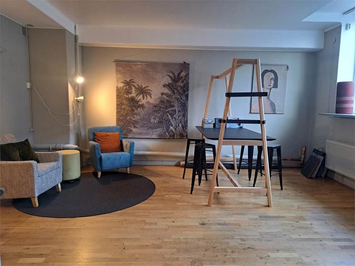 Lokalens yta är fördelad på tre rum samt ett stort nyrenoverat modernt kök.