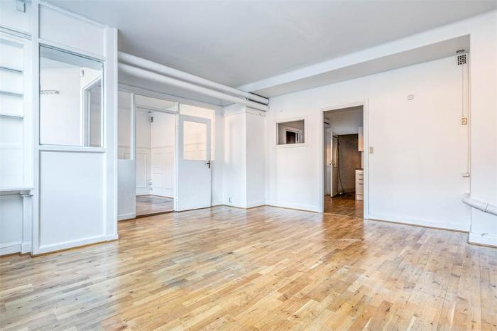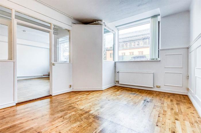 De två stora rummen ligger mot gatan och är rymliga och ljusa.
