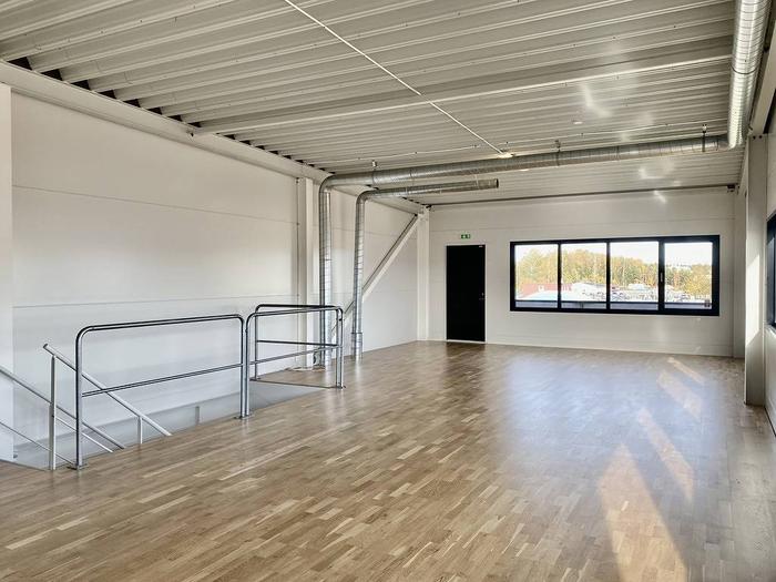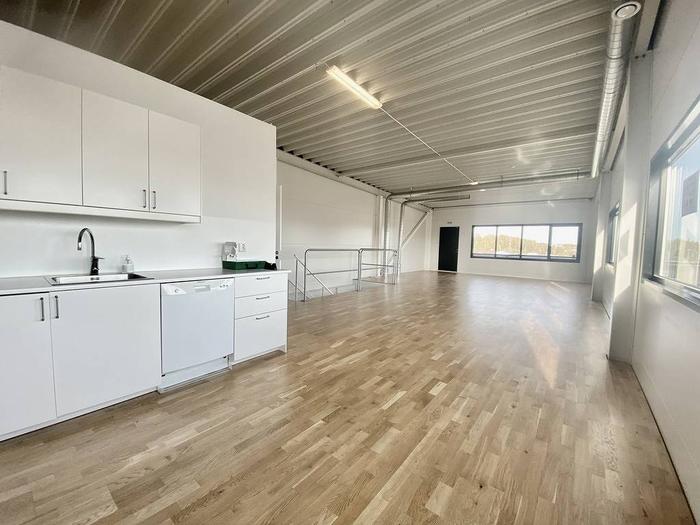 Lokalerna har vardera har en total area om 200 kvm fördelade på 2 plan. Lokalen har betonggolv på entréplanet med en gemensam oljeavskiljare, uppkopplad till kommunalt VA, indraget fiber. Det är vattenburet golvvärmesystem i entréplanet som ger en behaglig värme i lokalen. Vikportar av högsta kvalitet om 4,5x4,0 meter, takhöjden i lokalen är drygt 5 meter. Övre planet är inrett med ett snyggt innergolv, ett kök med vita luckor, diskmaskin, diskho. Badrum med grått klinkergolv och helkaklade väggar i vitt, wc och duschhörna. Gavellokalen (nr 2) har fönster längsmed hela kontorsplanet vilket ger ett mkt fint naturligt ljusinsläpp.