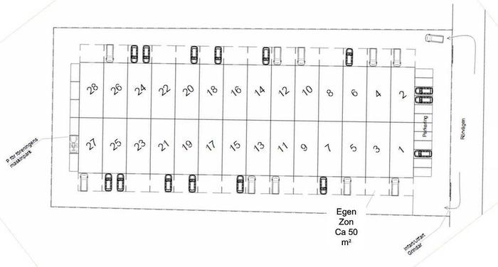 - Till lokalen hör 2-3 bilplatser, markerad ruta utanför portarna