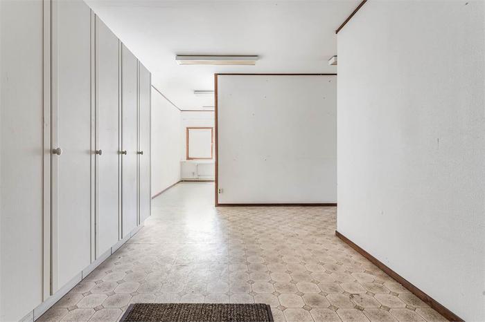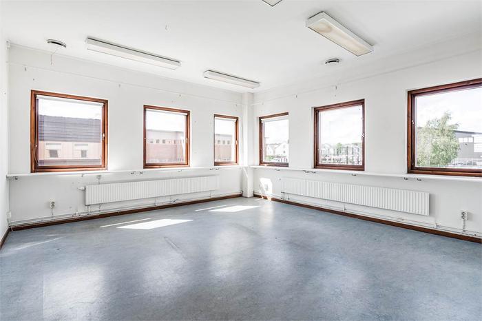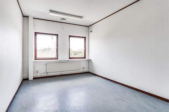 Lagerlokalen har en öppen planlösning, cirka 2.8 meter i takhöjd och en egen markport för smidig in- och utlastning. Kontorslokalen belägen en trappa upp erbjuder separata kontorsrum i olika storlekar, då lokalen är i behov av renovering finns det goda möjligheter att göra anpassningar enligt hyresgästens önskemål. Faciliteter i form av kök/pentry, dusch och WC finns på båda våningsplanen.