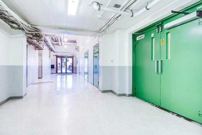 Lokalen är belägen i entréplan och lättillgänglig för i och urlastning via breda portar.