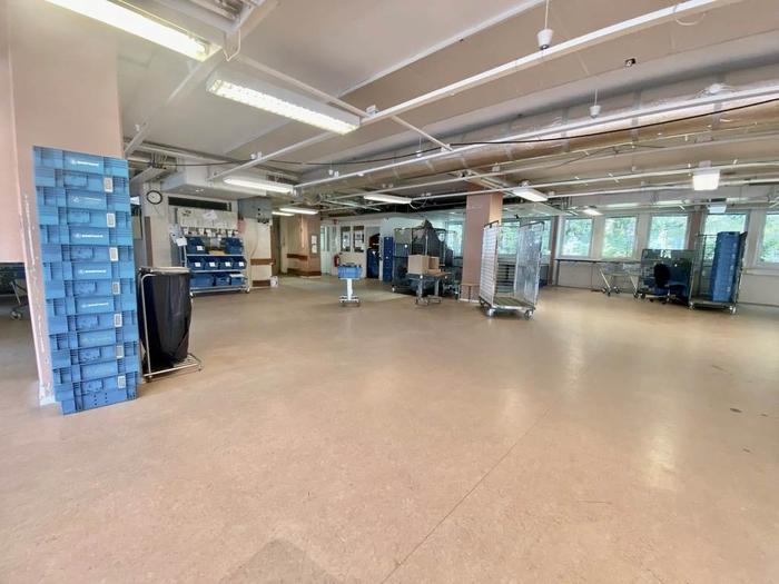 Lokalen är i dag anpassad med omklädningsrum, lunchrum, kontorsrum i olika storlekar och en större sorteringshall.