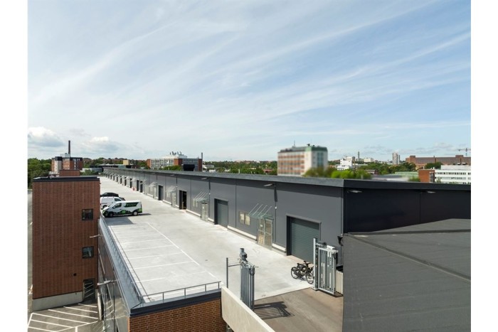 Lokalen är belägen på plan 3 och nås enkelt via p-huset, där du kör direkt upp till entrén. Parkeringsnurran har en maxhöjd på ca 2,4 meter. För större leveranser finns möjlighet att nyttja byggnadens två lasthissar, som rymmer en EU-pall. Dessutom finns det parkering både i direkt anslutning till lokalen och i det intilliggande p-huset.