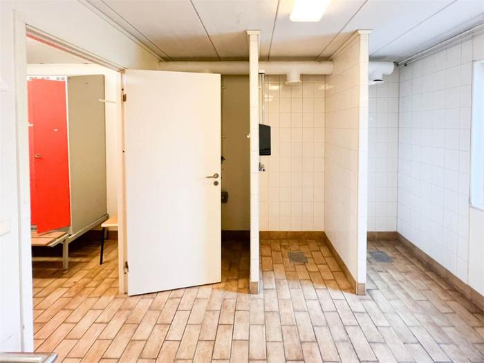 Byggnaden är sektionerad enligt ritning och takhöjden är ca 4,5 m under balk.