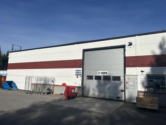 Höglager med måtten 18 x 24 m helt utan pelare. Ny LED-belysning och port med mått 4 x 4,5 m (bredd x höjd).