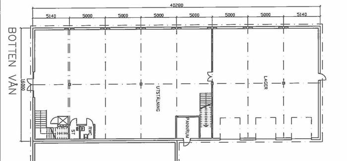 2-plansbyggnad med butiks- och lagerytor med stort skyltfönster i båda plan.