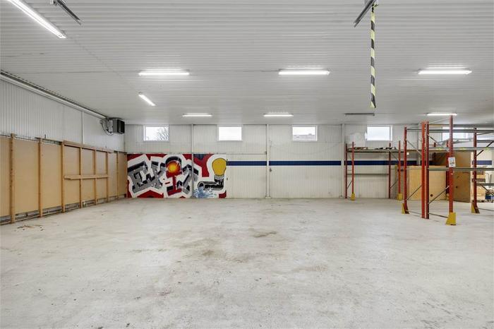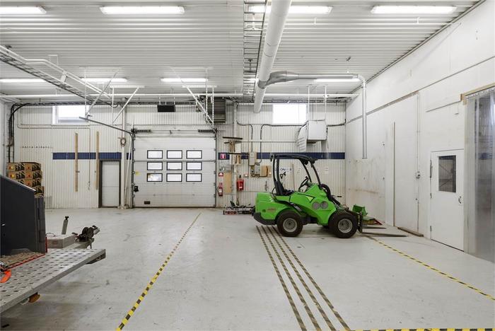 Lokalen består av totalt 1239 kvm fördelat på 839 kvm lager/lackverkstad med två portar och ett mycket fräscht inrett kontor med personalytor om ca 400 kvm. Takhöjden i lagerdelen är 4.76 meter. Stor asfalterad inhägnad gård med parkeringar på gården för kunder och personal samt rikligt med uppställningsyta.