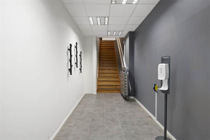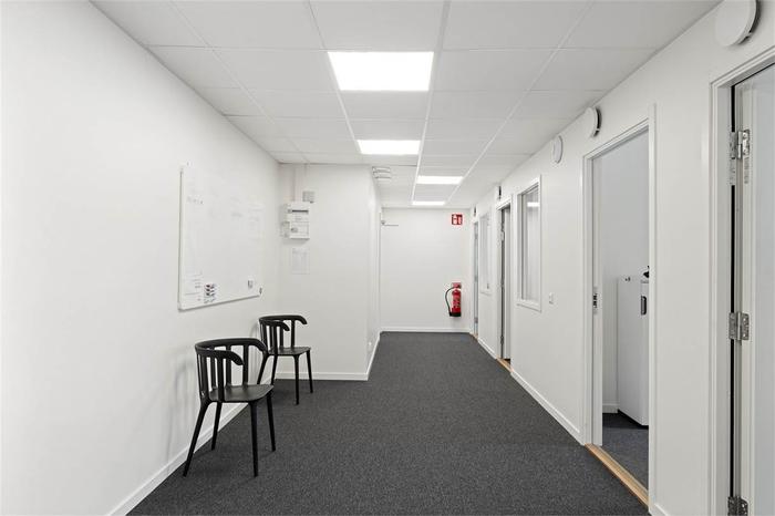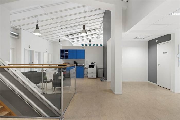 Trevligt och ljust, till största delen rumsindelat kontor med stort öppet lunchrum. På bottenplanet finns dubbla omklädningsrum samt praktiska lager-verkstadsytor. Även 2 stycken mindre kallförråd finns att hyra. Lokalen är delbar på flera olika sätt.
