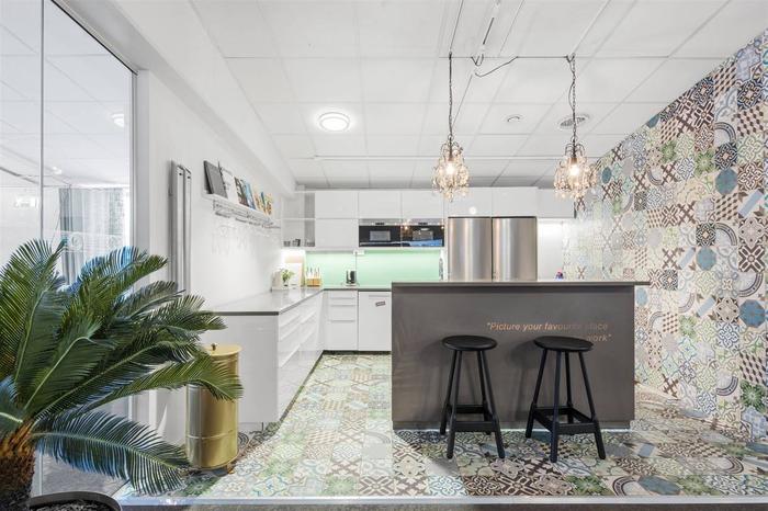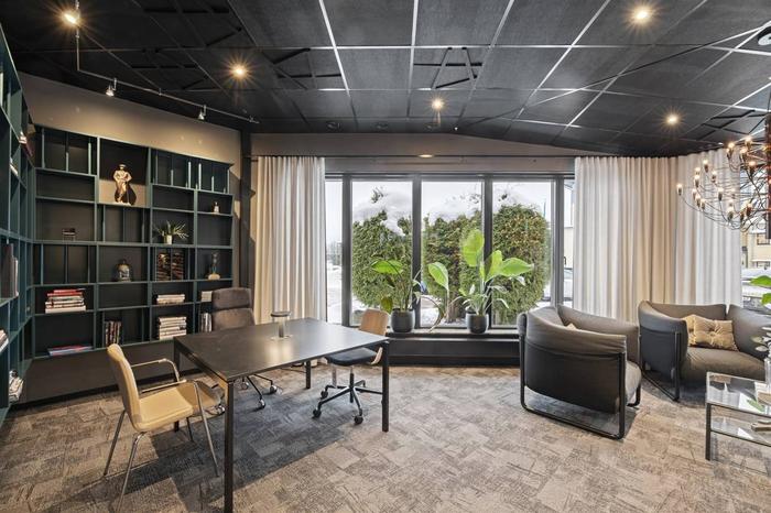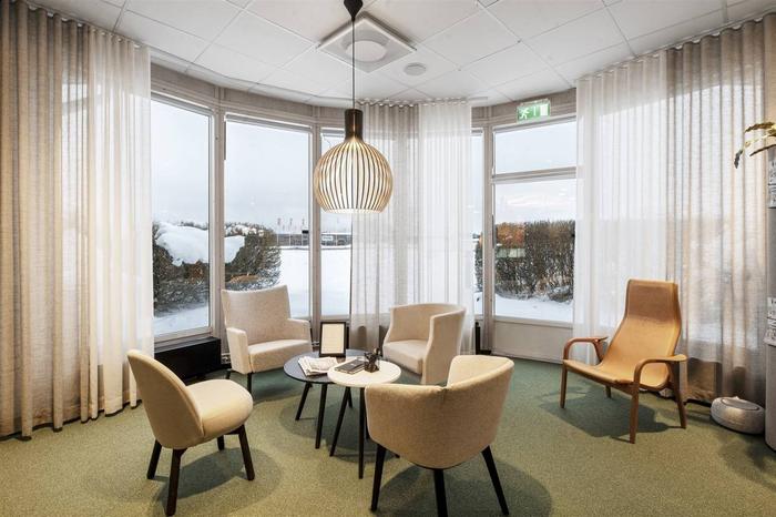 Lokalerna har genomgående en modern standard med smakfulla färgval och bra lösningar. Golven är till stor del täckta med textilmattor som ger en behaglig ljudnivå och trivsamt intryck. Det är fina personalutrymmen med kök där det ryms ordentligt med matplatser samt kaklade toaletter.