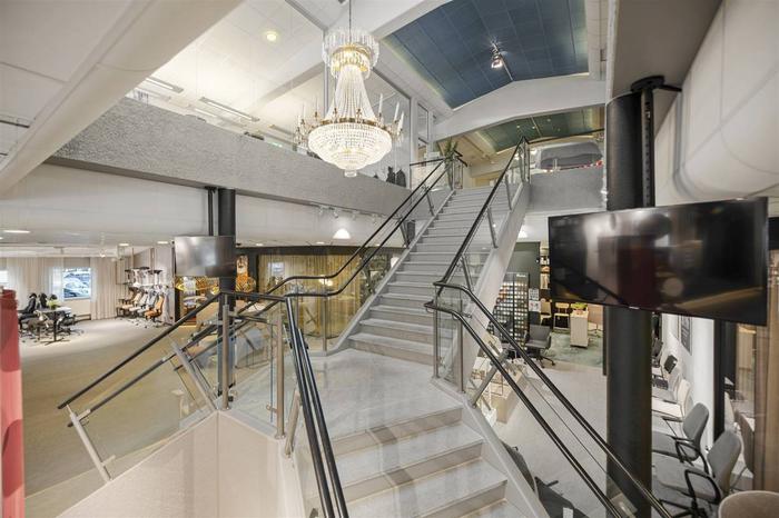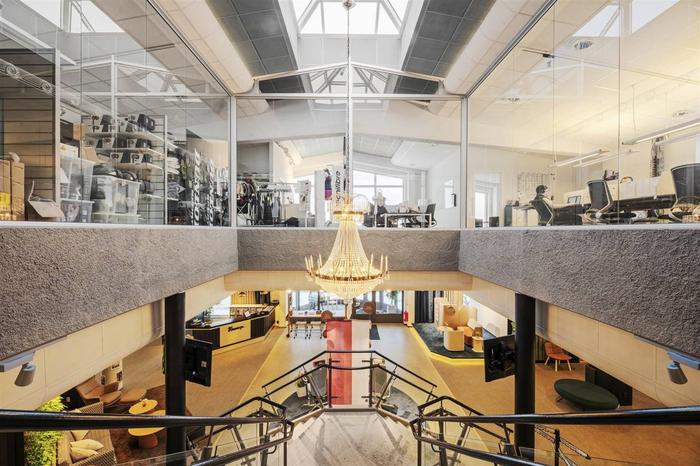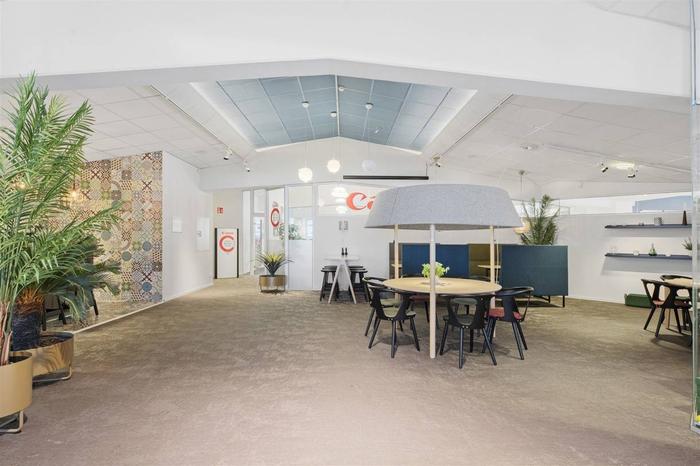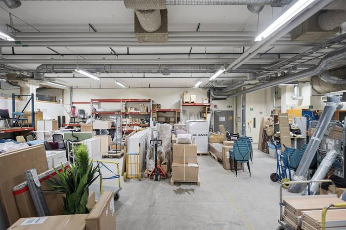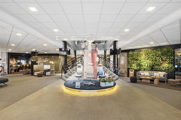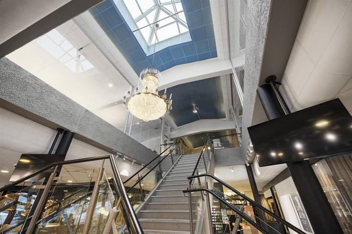 Byggnaden är i två plan . På bottenvåningen finns en lokal som kombinerar butik/utställning med kontor. Det är i huvudsak en öppen planlösning. På ena änden finns även en lagerlokal som har 4 m i takhöjd och nås via en vikport.