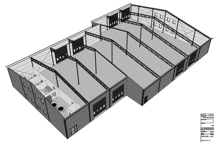 Här får ni en modern och flexibel verksamhetslokal som är lätt att anpassa efter just er verksamhet. Om ni väljer att hyra hela byggnaden ingår ett standardpaket med hela 8 portar, medan ni får 2 portar om ni hyr en av enheterna på 292-640 kvm.
