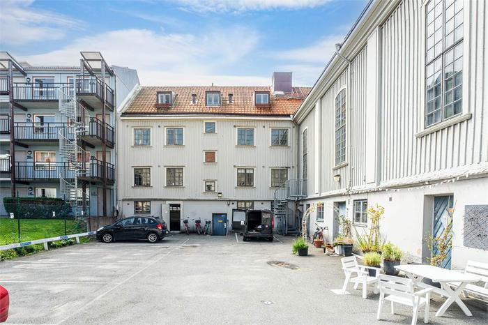 Det finns parkeringsplatser på gården att hyra till lokalen