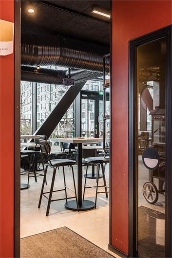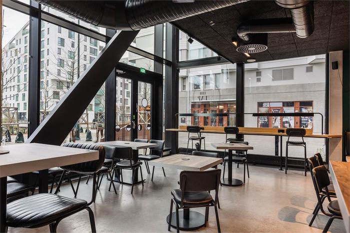 Lokalen ligger i bottenvåningen av BaseCamp-byggnaden, ett studentkvarter med 583 lägenheter. Området präglas därför av mycket aktivitet och rörelse under hela dagen.