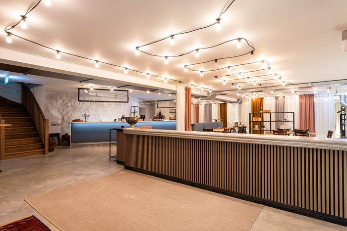 Idag bedrivs våningen som en fest våning och det är det den är bäst lämpad till. Man kan absolut ha en fungerande restaurang och ha fest som ett komplement, man har dessutom en fin tillgång till innergården med ca 50 uteplatser.