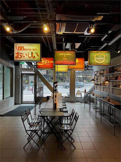 Restaurangen är idag ett populärt lunchställe med asiatisk inriktning, men med sin avskalade och stilrena design kan en ny ägare enkelt sätta sin egen prägel på lokalen. Totalt finns cirka 20 sittplatser, och tack vare närheten till två välkända asiatiska krogar lämpar sig lokalen utmärkt för ett liknande eller kompletterande koncept.