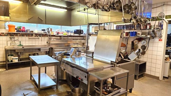 Bra och väldisponerat kök med kylrum och frysrum, stekbord flera ugnar, här går det att producera mycket mat, egen lastkaj.