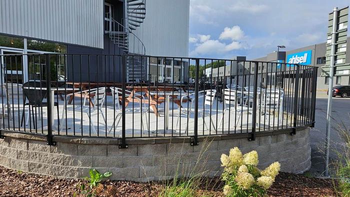 Trevlig ombonad matsal samt en mysig uteservering som ingår i hyran. Idag har man 4-5 lunchalternativ för 145 kronor, inklusive salladsbuffé, liten kaka och kaffe. Finns möjlighet att ladda ett kort för att få billigare luncher.