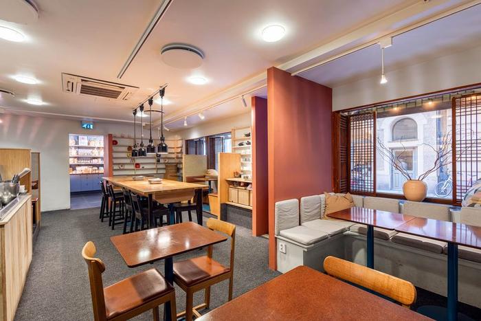 I matsalen ryms upp till 52 sittplatser och är idag fördelad på matsal och Deli med två separata entreér.