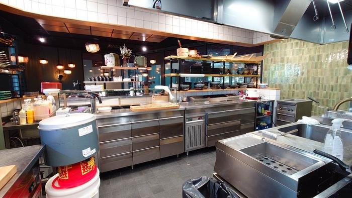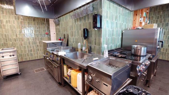 Modern restaurang med öppet kök - fullt utrustad för fortsatt drift