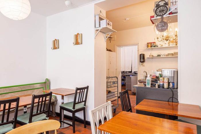 Lokalen är enkel men charmig, med ett inbjudande uttryck som lämpar sig väl för café- eller enklare restaurangverksamhet. Den saknar restaurangventilation och fettavskiljare, och installation av ventilation är inte möjlig. Bostadsrättsföreningen godkänner alkoholtillstånd, och tillåtna öppettider är mellan kl. 10-22. Lokalen har tidigare hyst flera välkända koncept och har god kännedom i området.