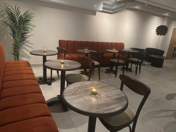 Den stora uteserveringen på den trafikerade gatan kan man ha uppemot 56 sittplatser. 16 sittplatser på Dragarbrunnsgatan och 40 sittplatser på St Pers gatan.