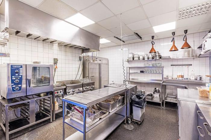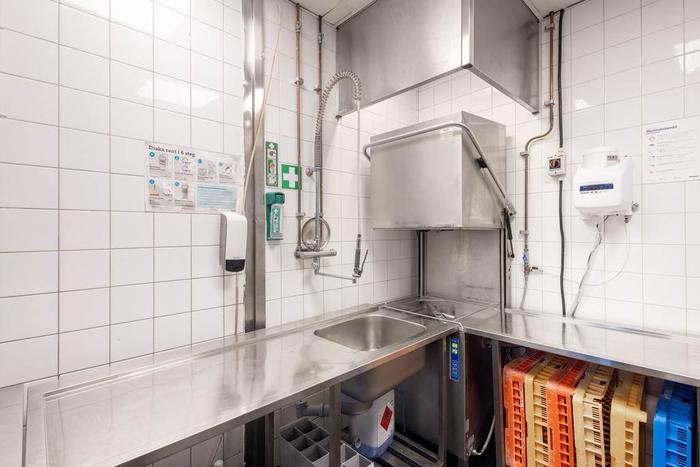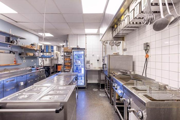 Här finns gott om förråd, kylrum och arbetsytor, vilket gör driften både effektiv och bekväm.