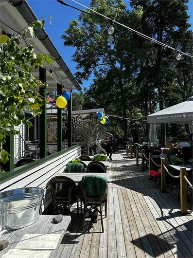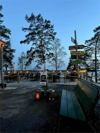 Sjökrog nära Vaxholm med stor härlig uteservering i sydväst läge, belägen på liten ö utanför Tynningö. Hit kommer man med båt och lägger till vid någon av bryggorna.